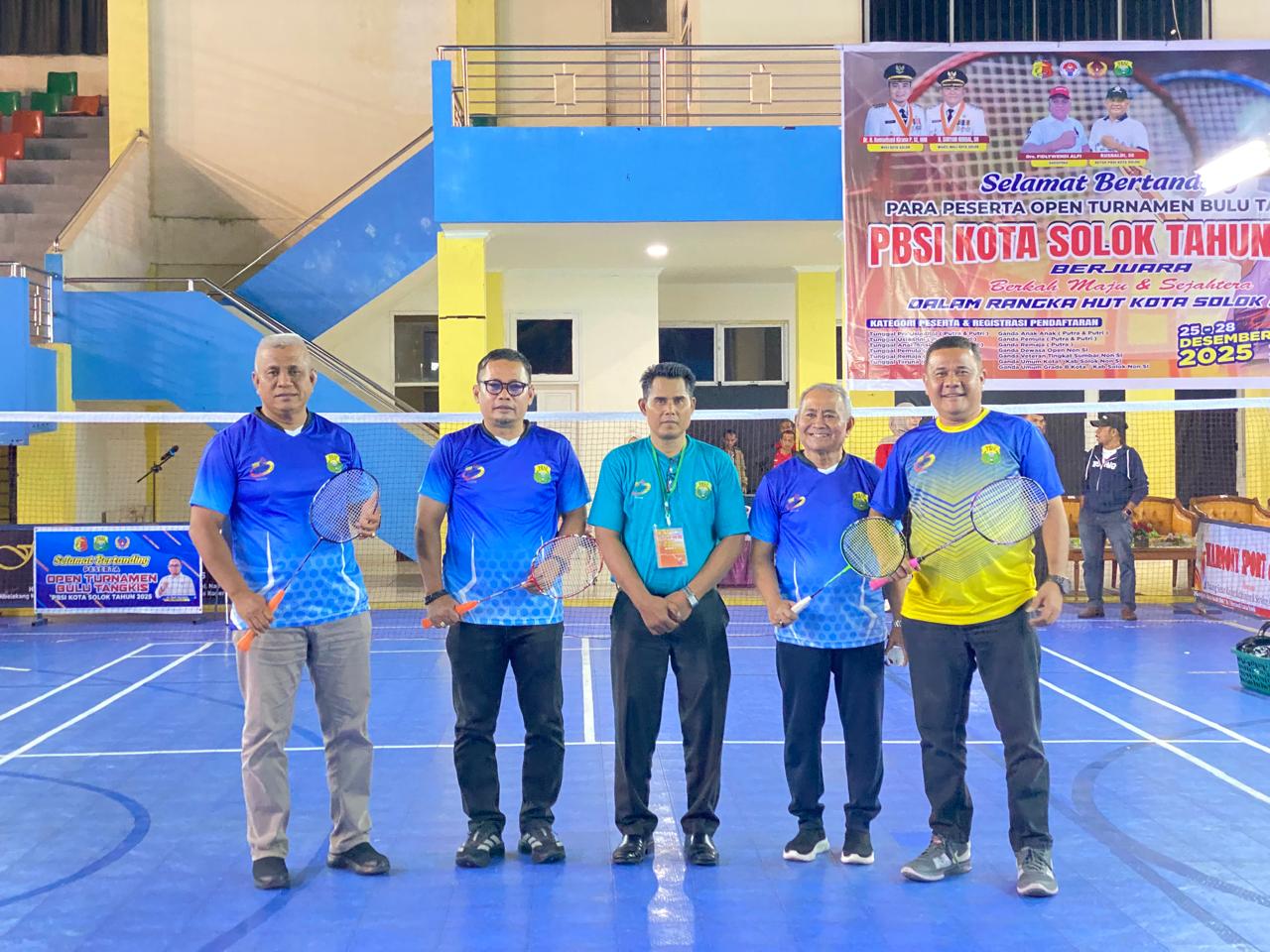 PIKIRANSUMBAR.com – Dalam rangka memeriahkan Hari Ulang Tahun (HUT) Kota Solok ke-55 Tahun 2025, Persatuan Bulutangkis Seluruh Indonesia (PBSI) Kota Solok menggelar Open Turnamen Badminton PBSI Kota Solok Tahun 2025, yang secara resmi dibuka oleh Wakil Wali Kota Solok, Kamis (25/12/2025), di GOR Alimin Sinapa.